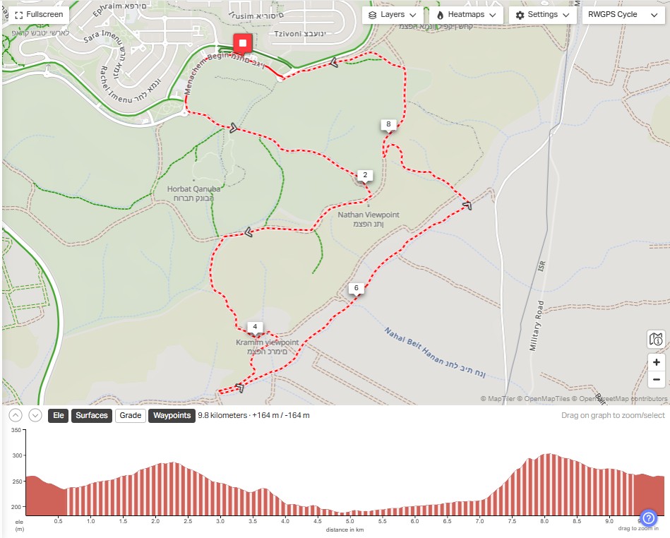 מסלול 10 ק”מ מתקדמים – https://ridewithgps.com/routes/52575171